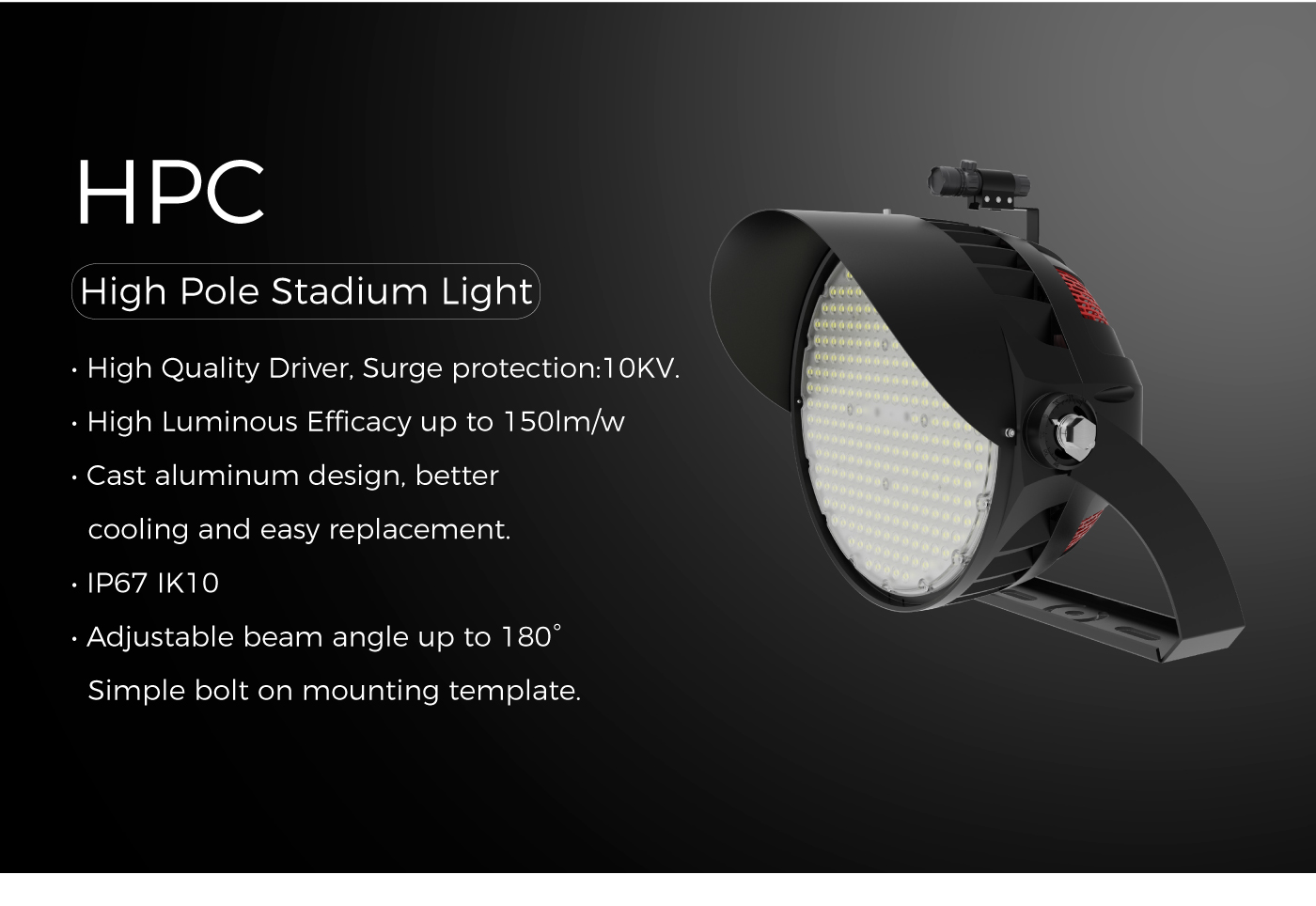 High Post LED Stadium Light 500W 600W 800W 1000W1200W -150lm/w - UL cUL CE Rohs