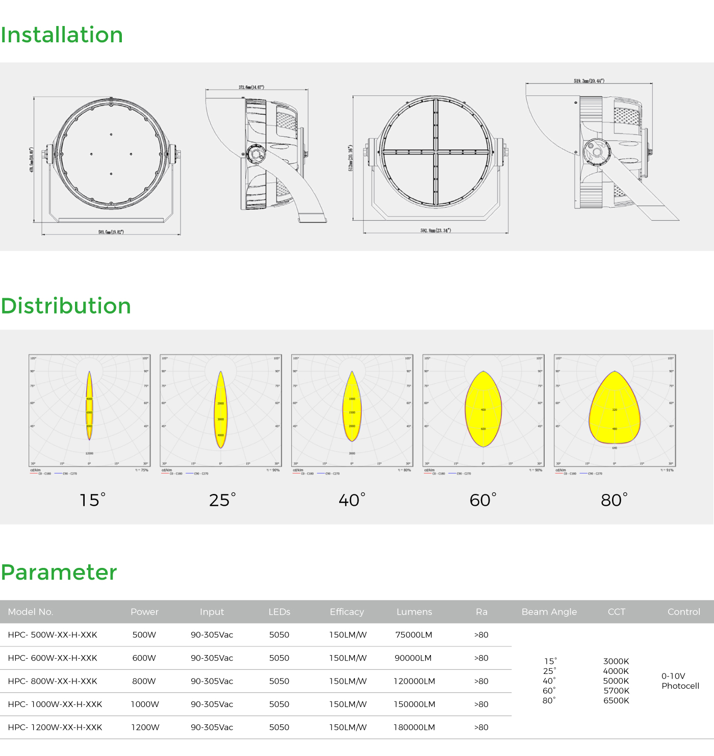 SKU Solution Eesy Assembly High Post LED Stadium Spot Light 200W 250W 300W 400W 500W 600W 750W 900W 1000W1200W 160lm/w UL cUL CE CB SAA Rohs