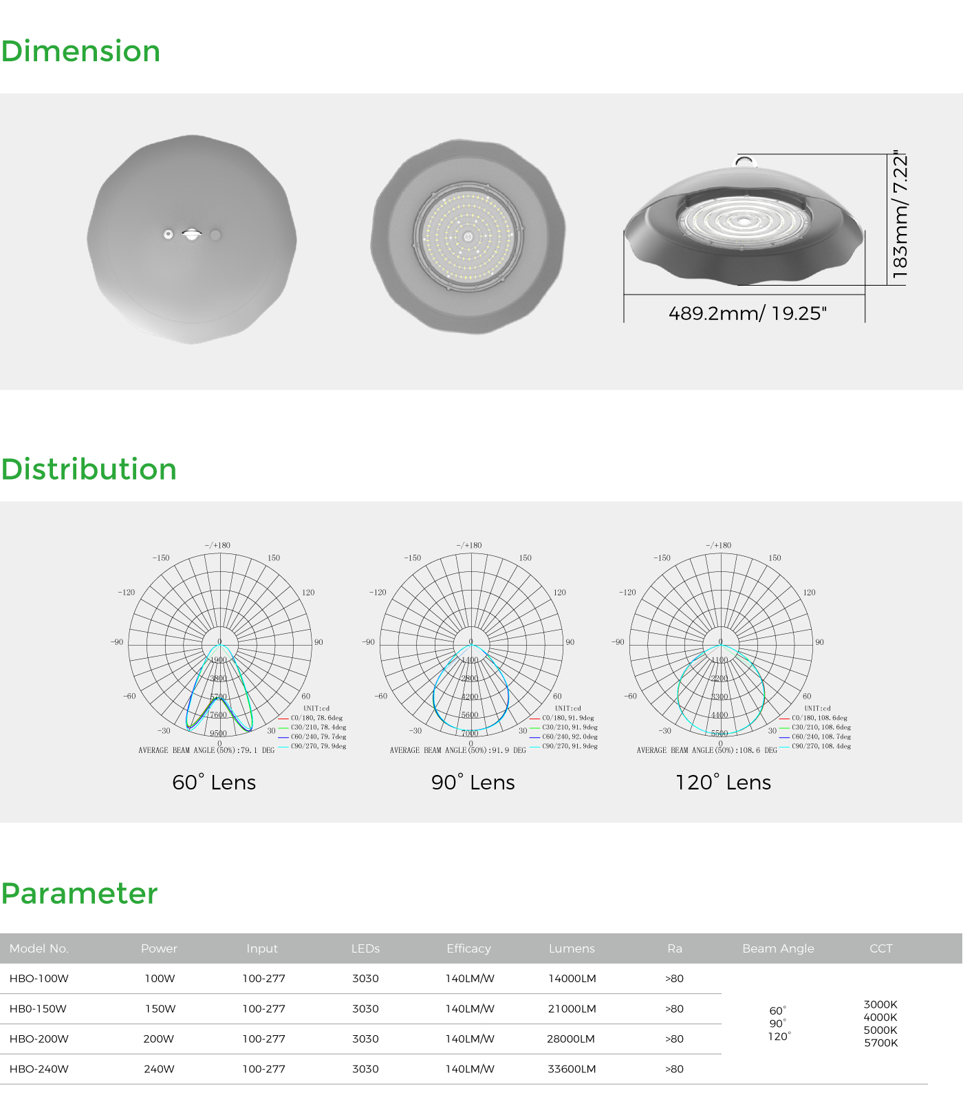 High efficacy, 140lm/w or 200lm/w CRI>80