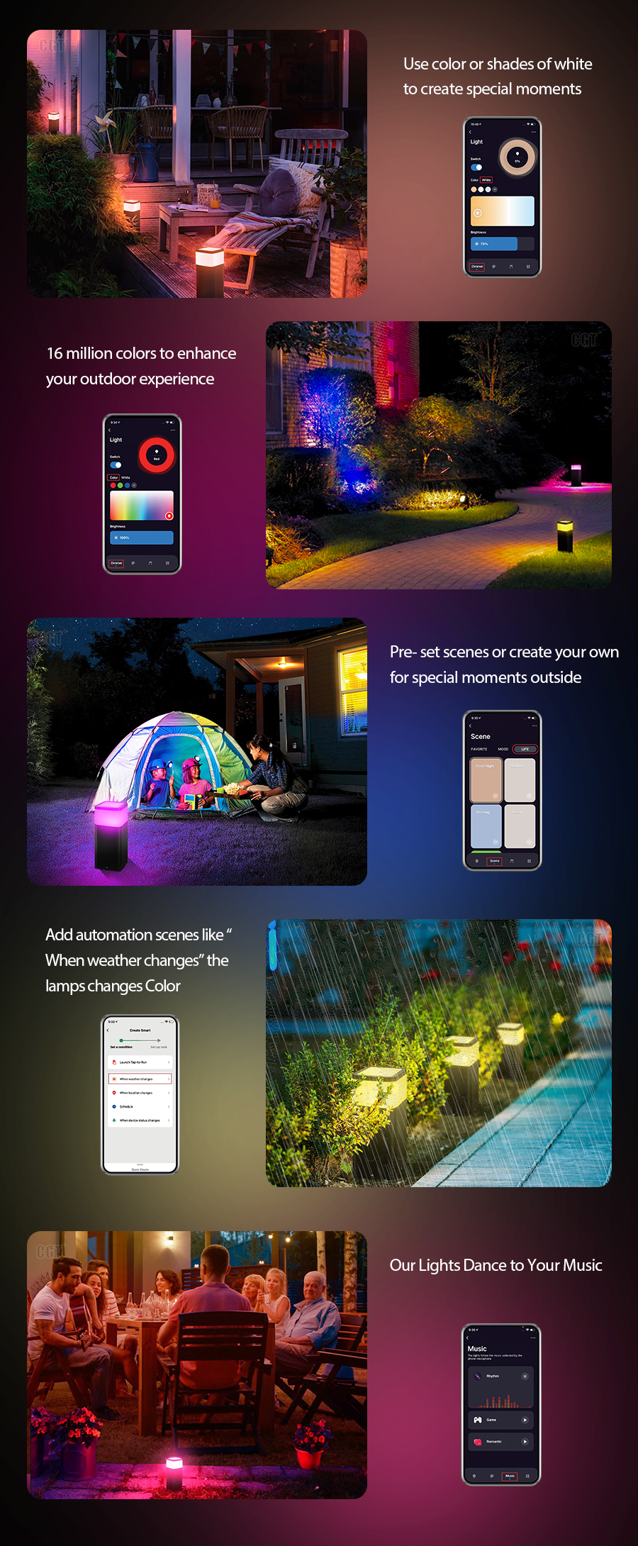 White and Color Ambiance Bluetooth Mesh LED Landscape Path Light - APP / Voice Control -Work with Tuya, Alexa,Goolge Assistant